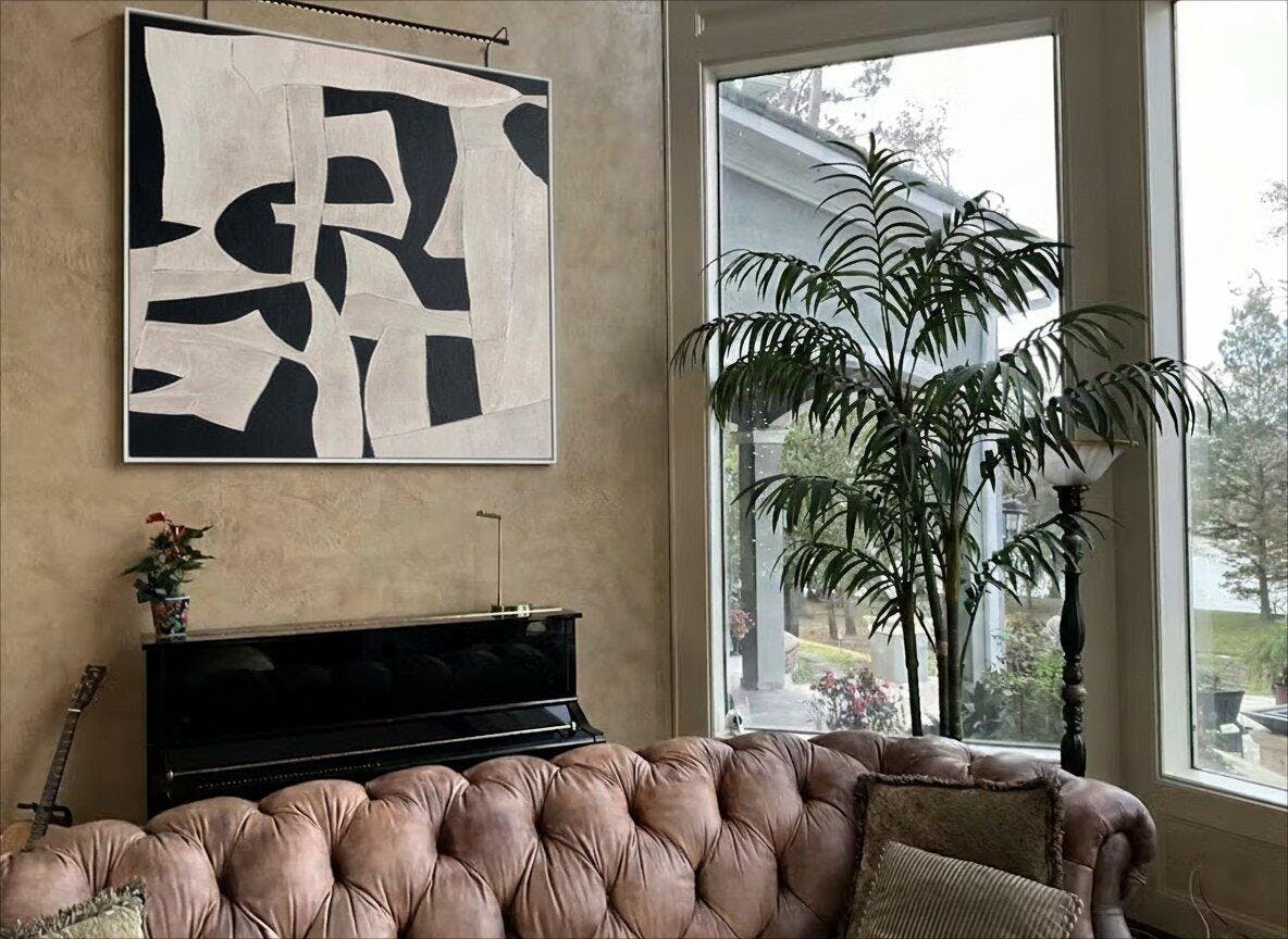 Inspired by the artist’s observation of shadows dancing on a stark, modern building, fluid black and white forms overlap in a striking composition. The dynamic, graphic style pays homage to the boldness of Franz Kline. Ideal for a minimalist dining room or an art - forward entryway. This piece isn’t just art – it’s a jolt of visual energy. Own it and let your walls command attention. Type: Hand Painted Contemporary Abstract Paintings, Packing: Rolled and shipped in a solid tube. The painting come with EXTRA 2-3 inch white border around for stretching or framing.Delivery time: You will receive the painting around 7-12 days( 3-5 days to finish the painting, 5-7 days to your home.by UPS And Dhl)