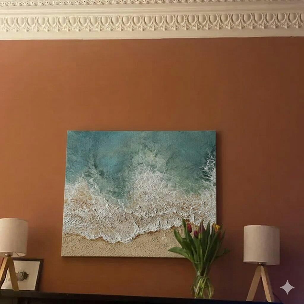 Dive into a serene coastal dream! This artwork, inspired by the gentle meeting of ocean waves and sandy shores, channels the tranquil essence of Impressionist seascapes. The artist, during a dawn walk by the beach, captured the soft turquoise of the water, the pure white of the foam, and the warm beige of the sand. It’s a perfect fit for a beach house living room, bringing the calm of the coast indoors, or a bathroom to create a spa - like retreat. Crafted with textured brushstrokes, it invites you to feel the ocean breeze. Own a piece of coastal tranquility and let your space be washed in relaxation. Type: Hand Painted Paintings, Packing: Rolled and shipped in a solid tube. The painting come with EXTRA 2-3 inch white border around for stretching or framing.Delivery time: You will receive the painting around 7-12 days( 3-5 days to finish the painting, 5-7 days to your home.by UPS And Dhl)