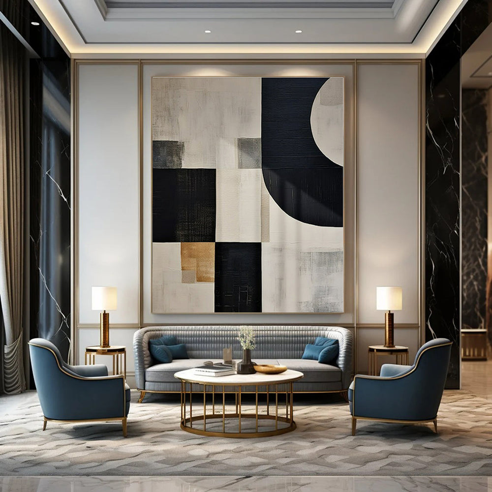 Mixed - neutral Geometric Blocks - Abstract Geometric Acrylic Painting CT1373