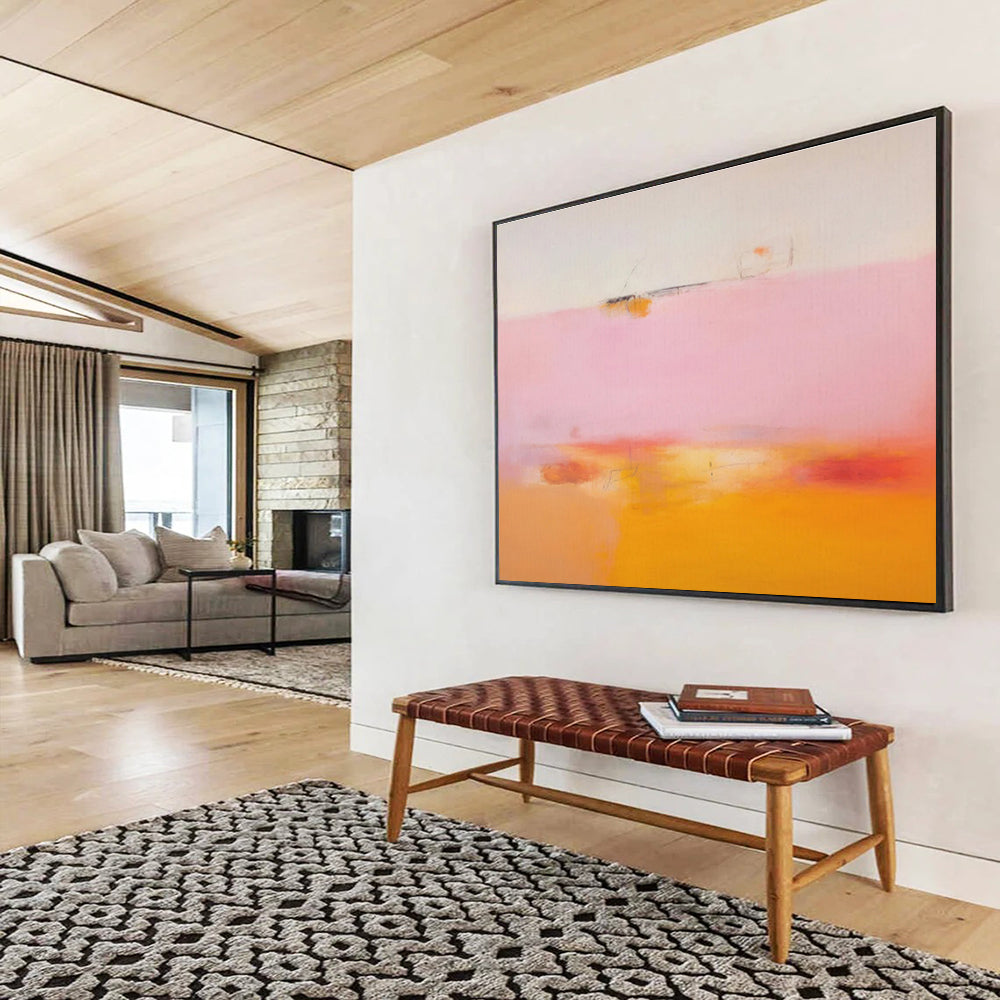 Drawing on the minimalist color explorations of Mark Rothko, this “Subtle Color Gradients” painting uses soft pink, orange, and white gradients. The artist spent time blending colors to create a calm, meditative scene. Perfect for a yoga studio, enhancing the peaceful ambiance, or a bedroom to promote relaxation. Own a piece that invites quiet contemplation and serenity. Packing: Rolled and shipped in a solid tube. The painting come with EXTRA 2-3 inch white border around for stretching or framing.Delivery time: You will receive the painting around 7-12 days( 3-5 days to finish the painting, 5-7 days to your home.by UPS And Dhl)